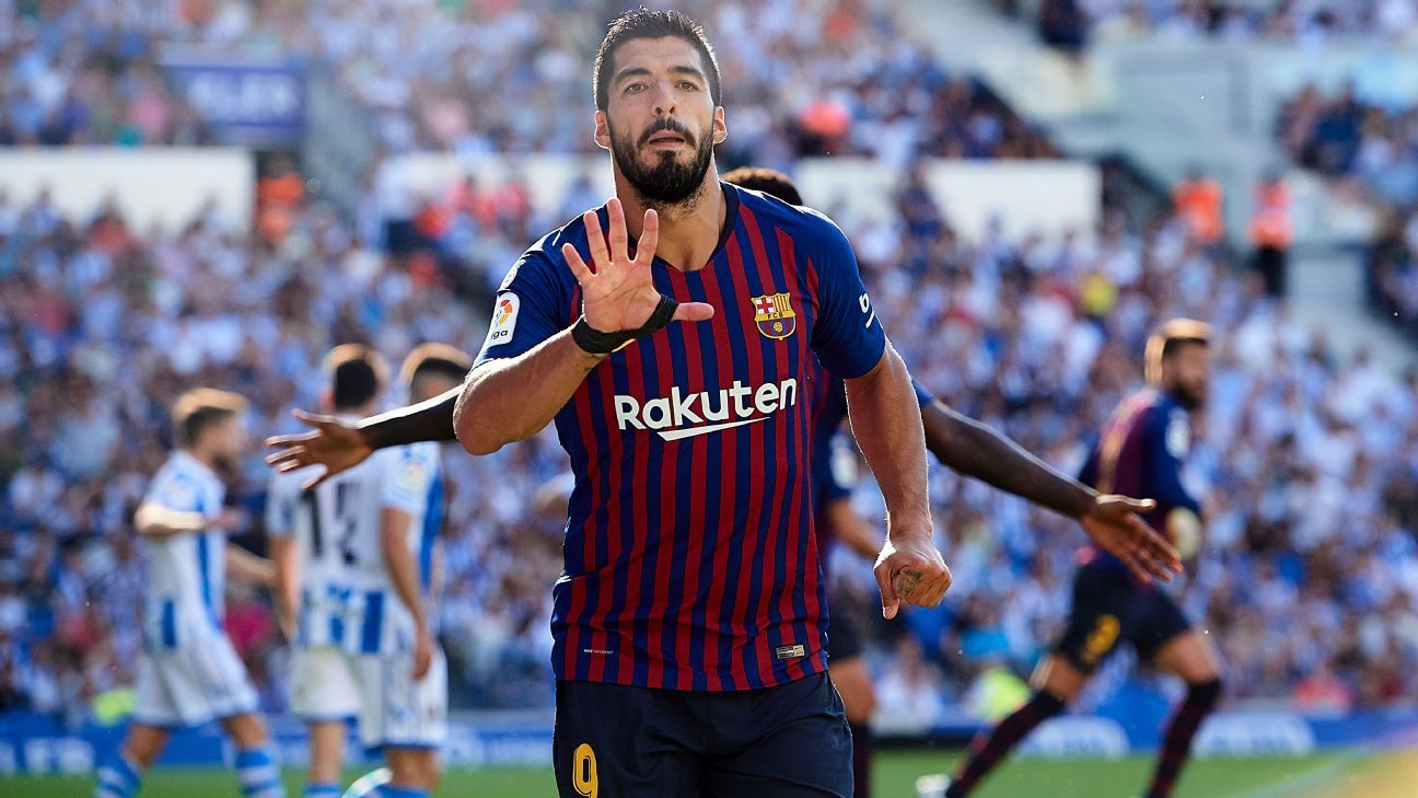 La liga season 2018 2019 matchweek 4. Elustondo 12 1 0. Estadio municipal de anoeta. Barcelona end anoeta curse coming back from 2 goals down with a goal from paulinho two amazing goals from suarez and an amazing freekick from messi.