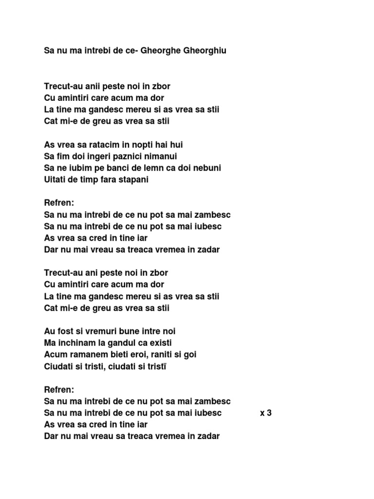 This video is unavailable. De ce ma intrebi. De mă întrebi de a mea comoară şi de sunt un om bogat de te duci la cec sau bancă vei vedea că sunt sărac. Anonim fara album cântec.