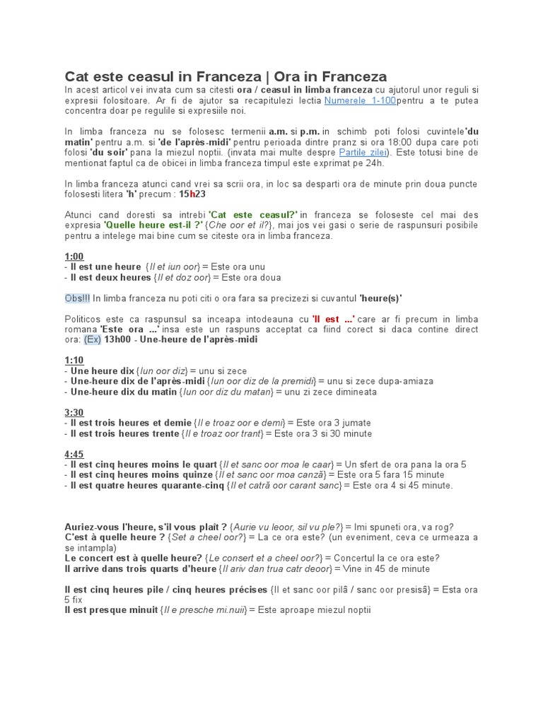 Cat Este Ceasul In Franceza