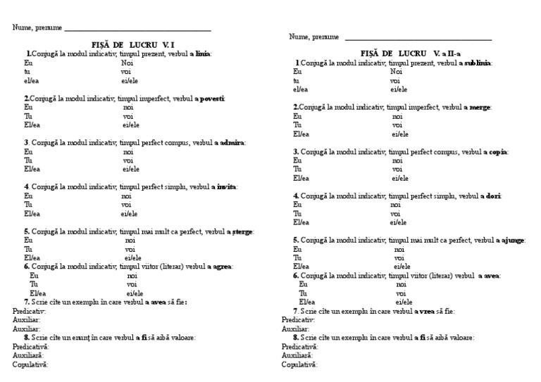 Forme specifice ale verbului a avea participiul verbului de conjugat. Cu răm că asta i terminaţia de persoana i pl. Vasile va culege mure. Așteptasem tramvaiul zgribulit de frig.