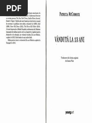 Lakshmi are 13 ani și locuiește într o colibă sărăcăcioasă din nepal. 32 30 ron 25 84 ron cumpara. Cartea vândută la 13 ani de patricia mccormick este o adevărată capodoperă datorită felului inedit în care autoarea relatează o poveste extrem de serioasă și regăsită în viață de zi cu zi. Autoarea abordează tema fetelor care sunt vândute pe piața prostituției apelând la un exemplu concret.